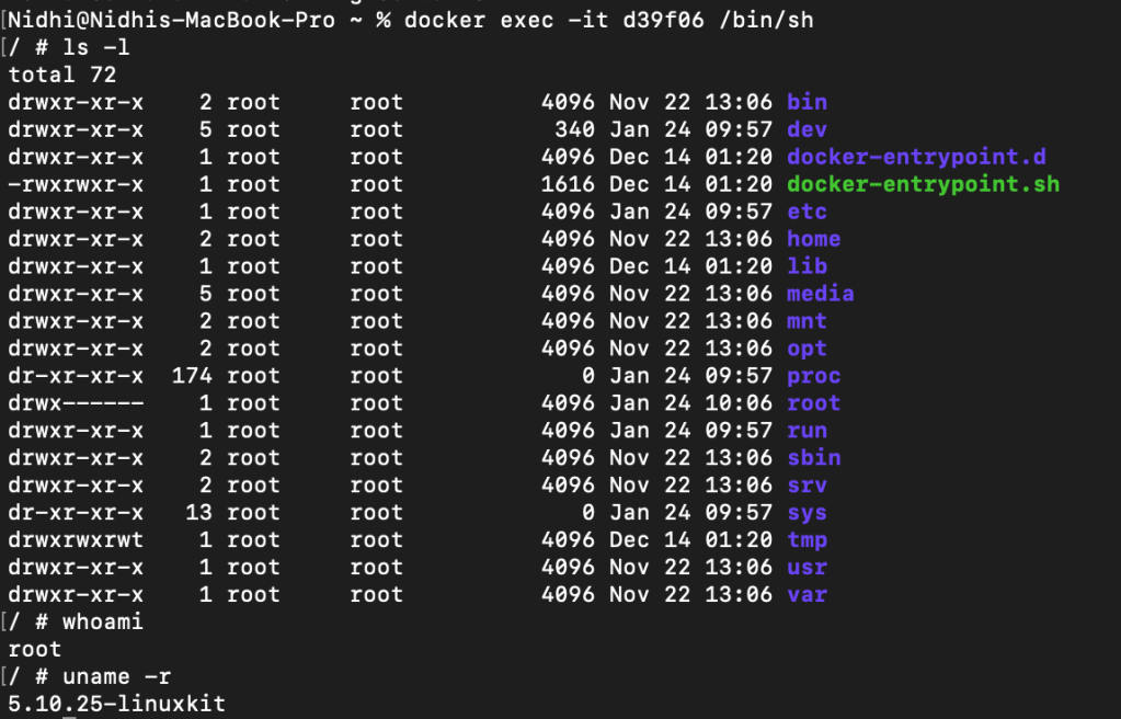 Now, if we go inside docker container and check what are the components there and what is published on port 80
