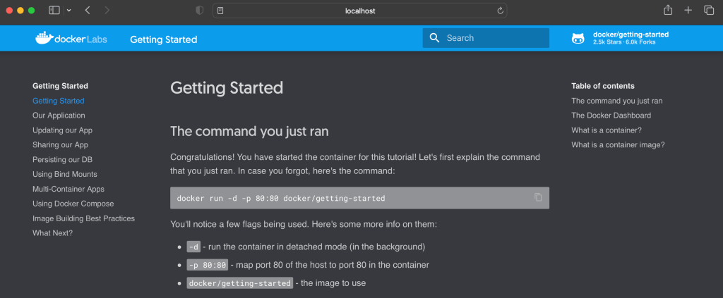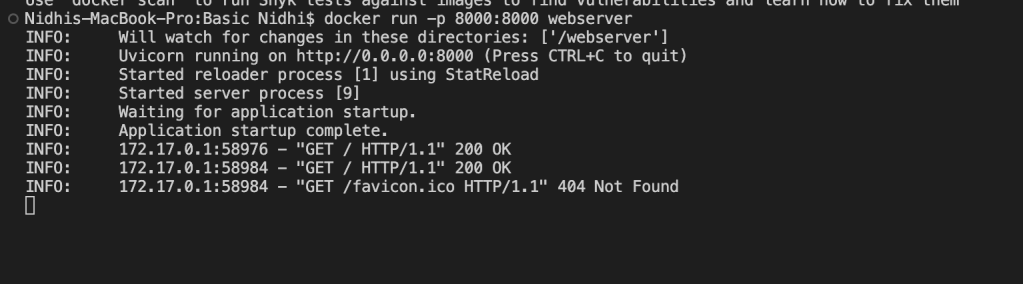 Using -p parameter, we have bonded internal port 8000 to external port 8000 so it can be accessible from out of container.