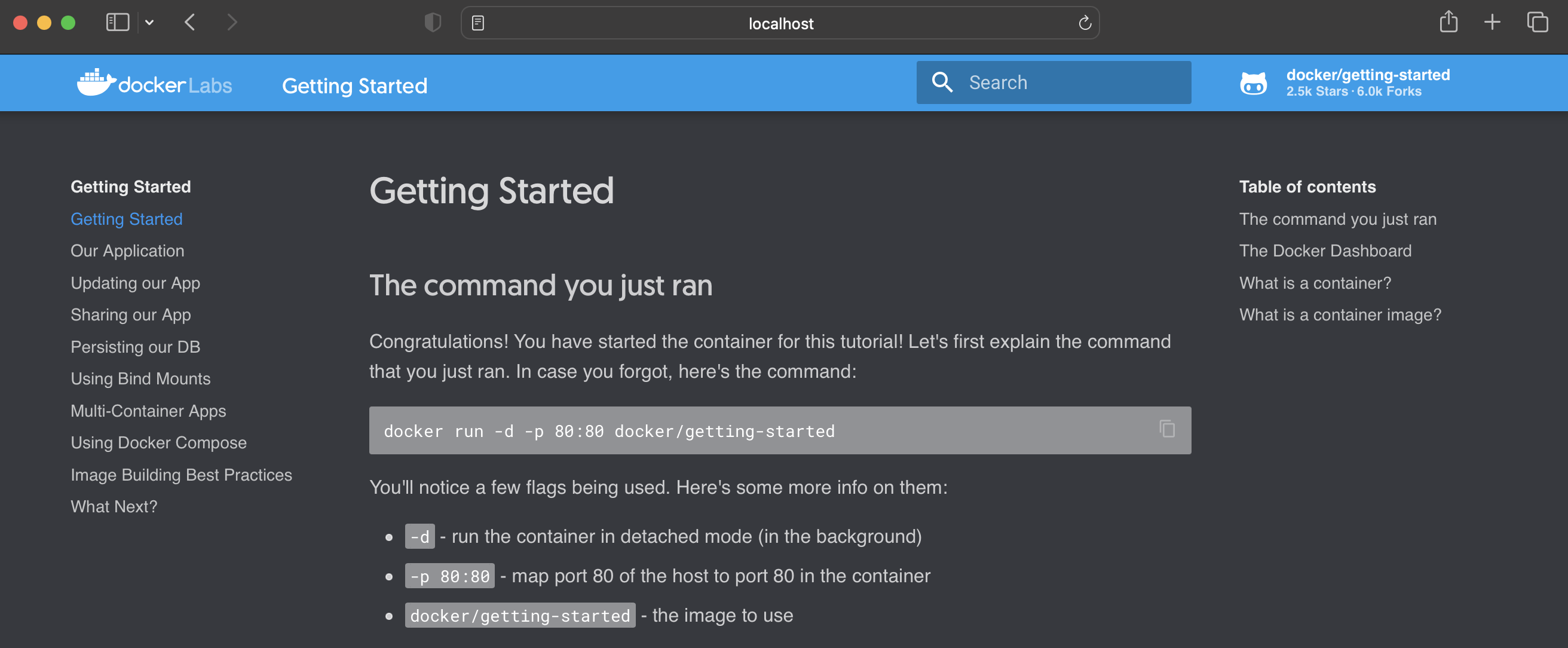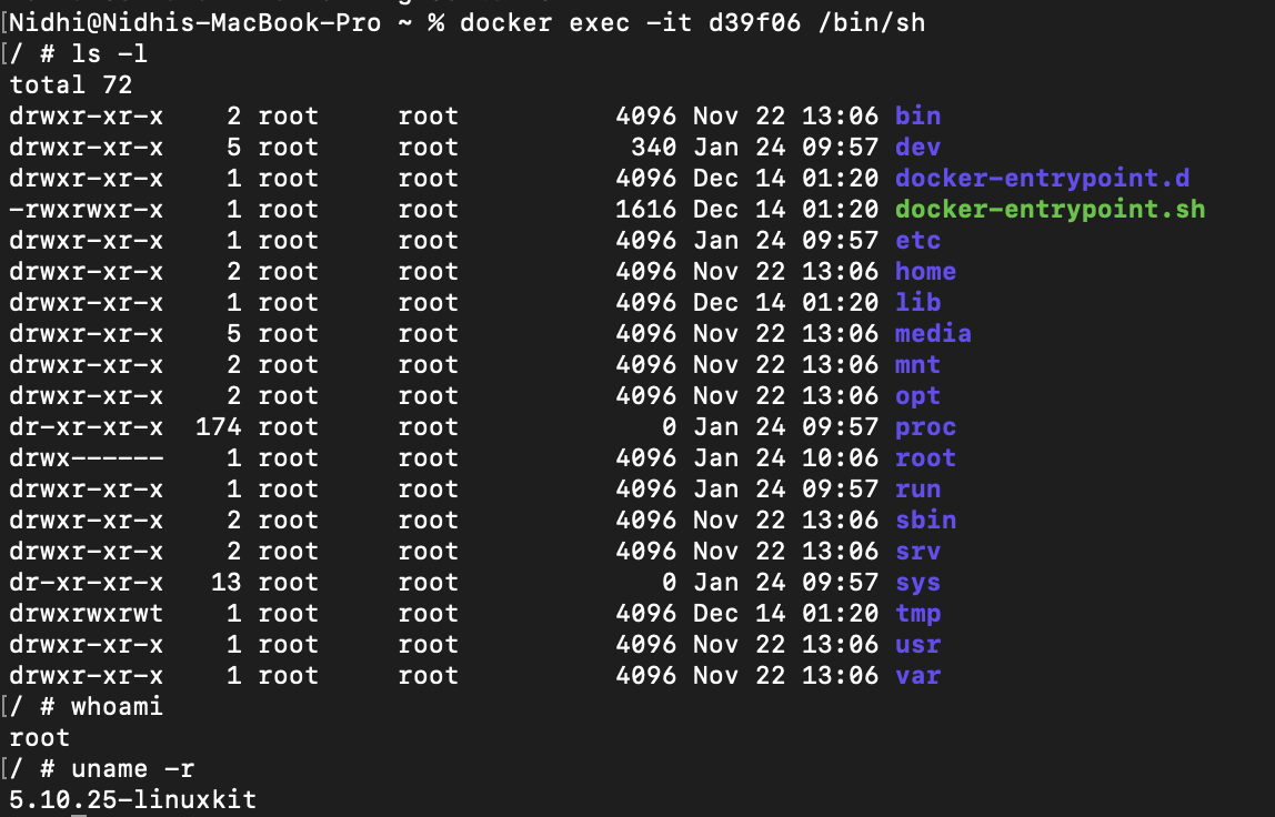 Now, if we go inside docker container and check what are the components there and what is published on port 80