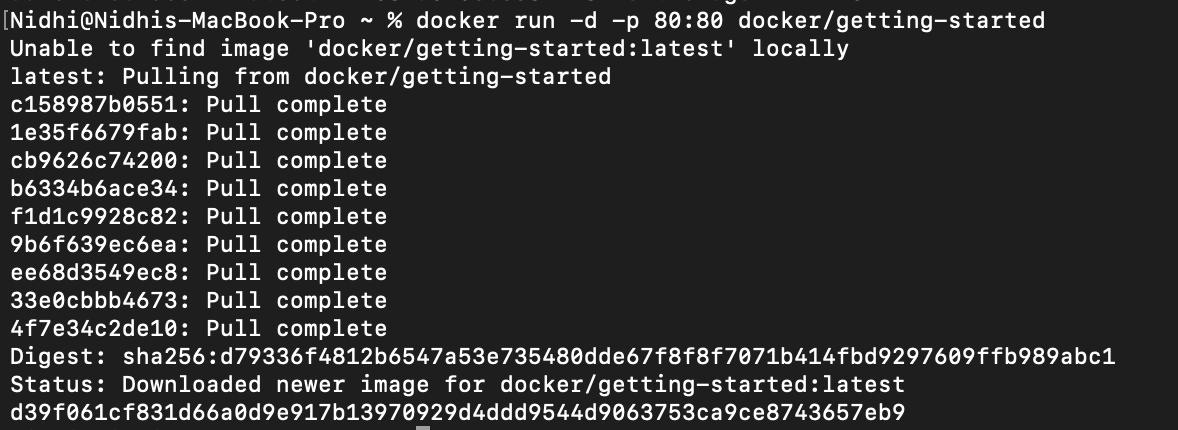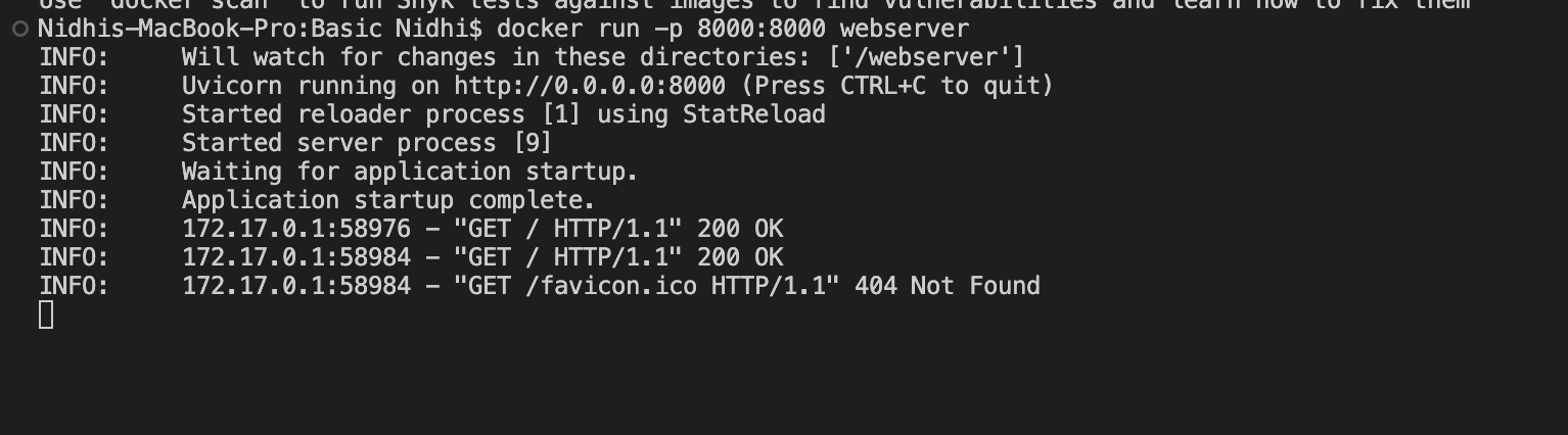 Using -p parameter, we have bonded internal port 8000 to external port 8000 so it can be accessible from out of container.