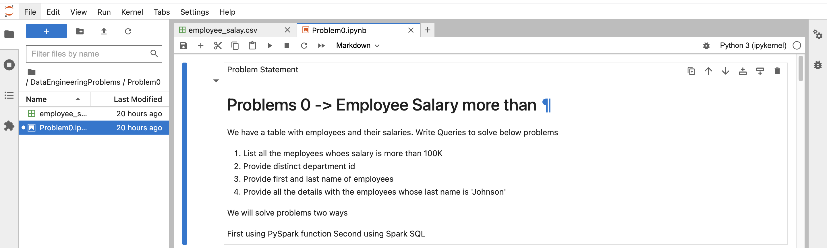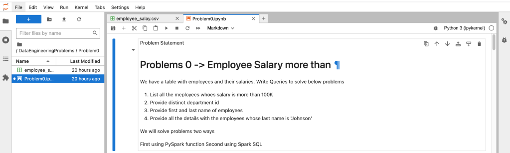 In Spark, we will solve this problem using PySpark functions and also using Spark SQL.