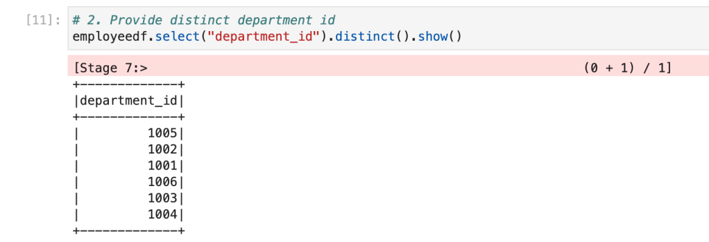 2. Provide distinct department id
