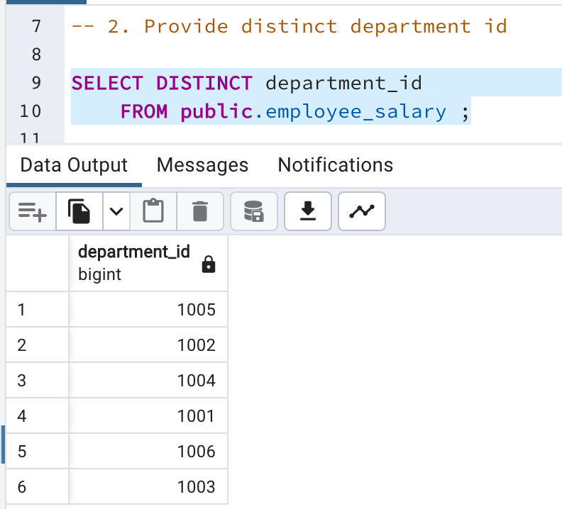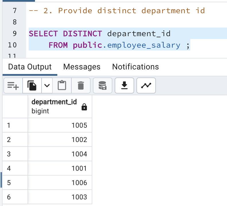 - Provide distinct department id
