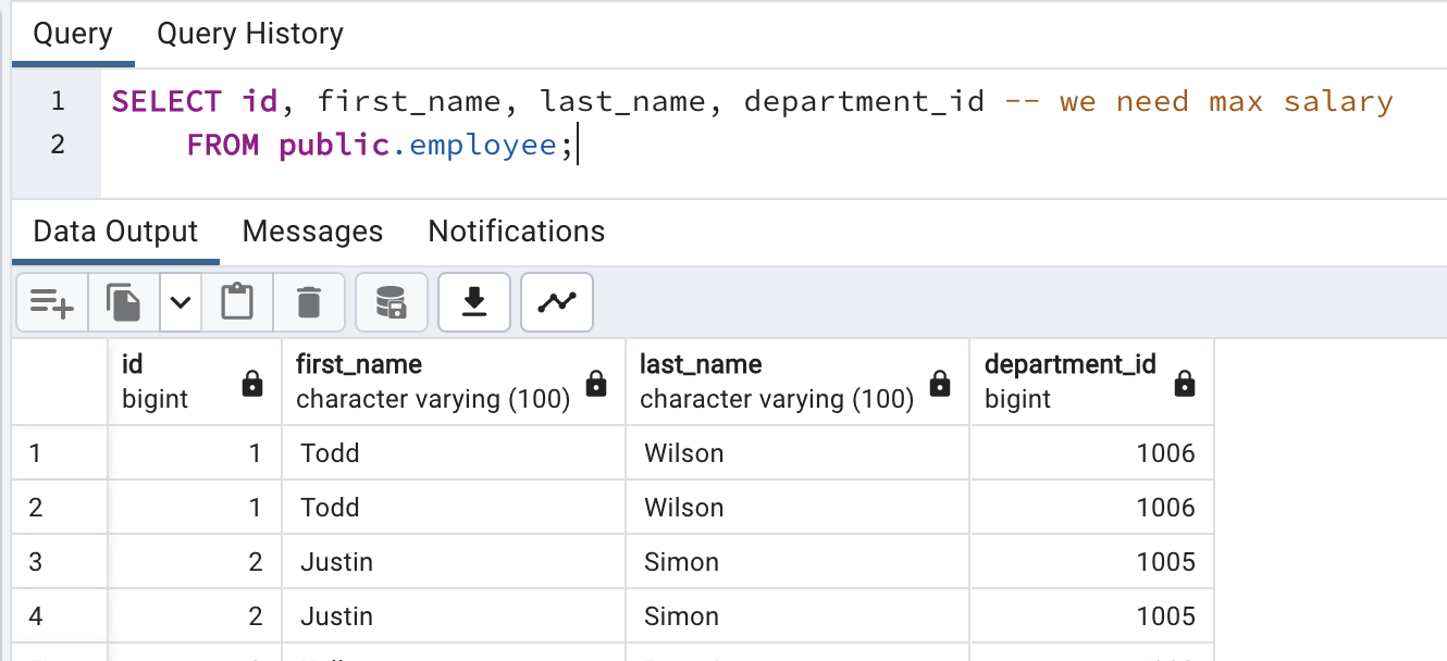- We need each employee’s latest salary and as per problem we need to consider the latest salary will be higher than earlier.