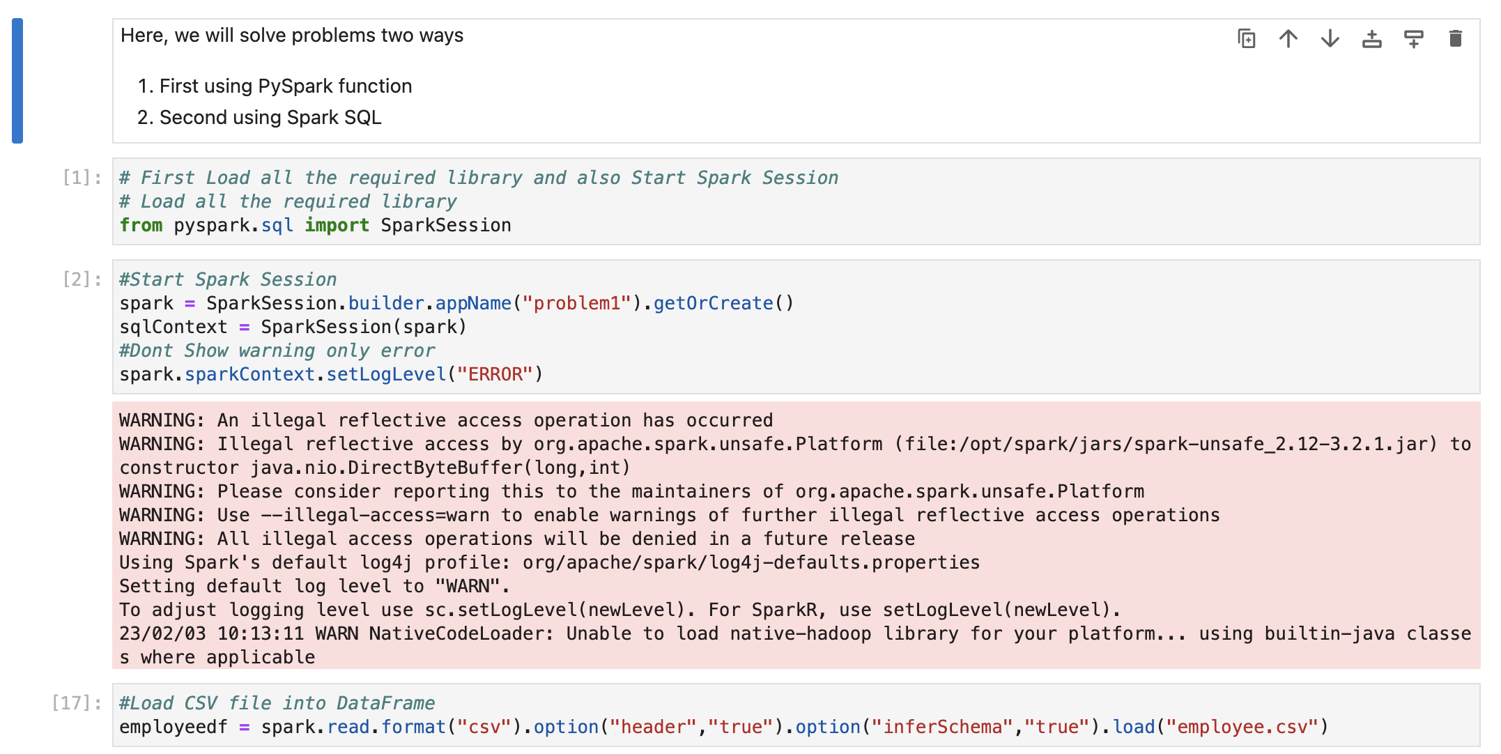 As we discussed in earlier blog, we will create csv file on Jupyter lab and load csv data into spark dataframe as below.