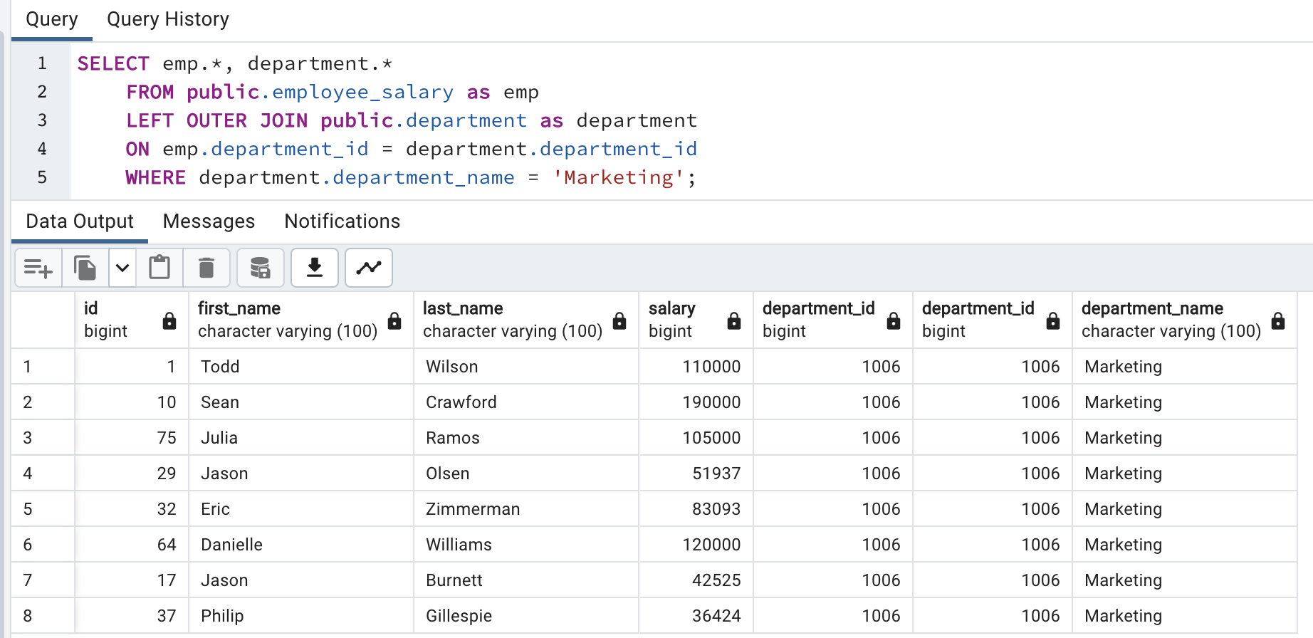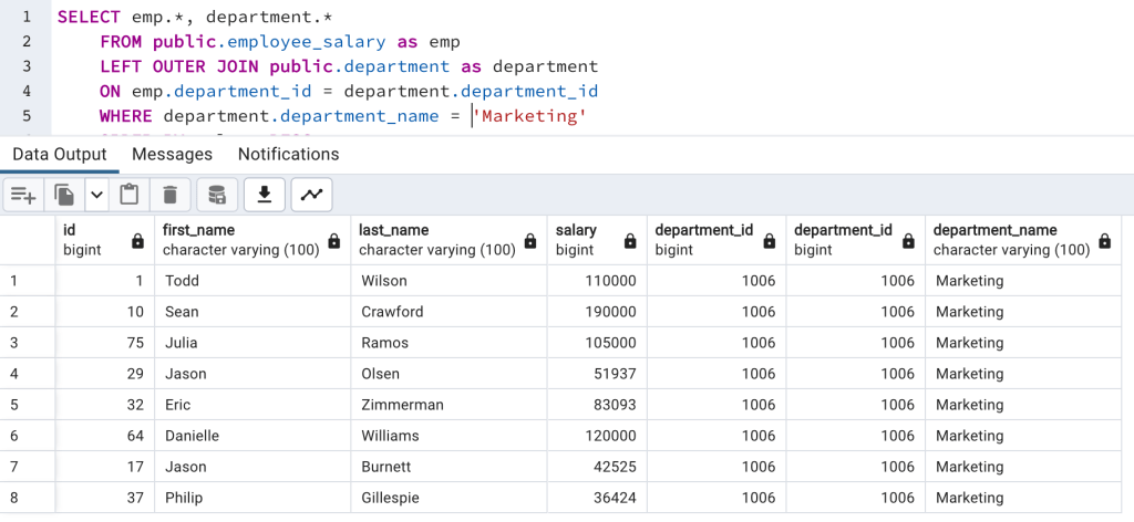 Now, we have department name with each employee.