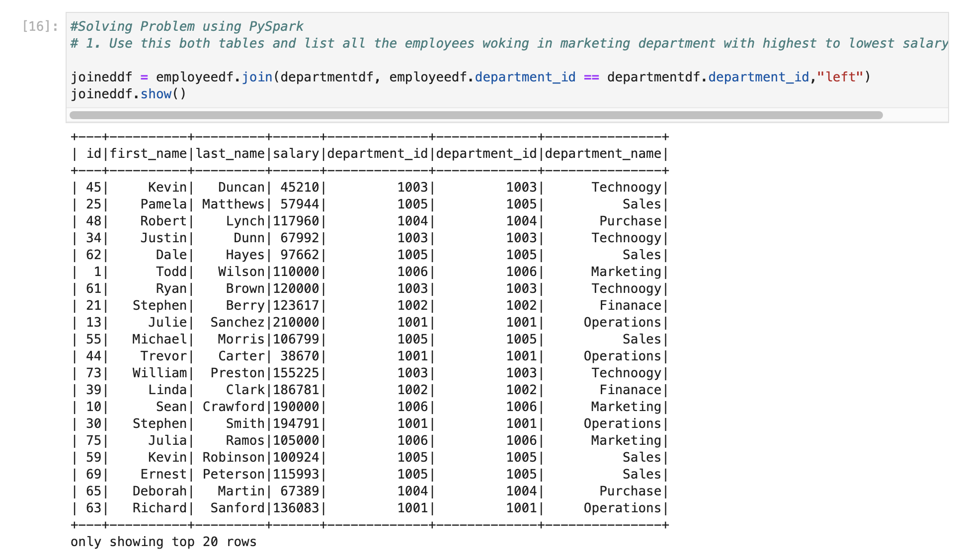 First, we will join two data frames using department_id as it is key column in both