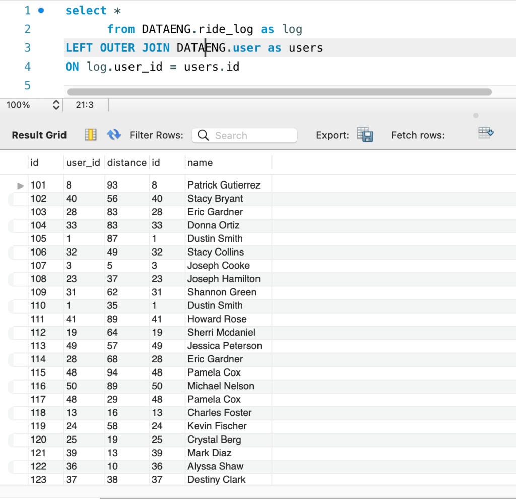 - First, we will join both tables so we have user name and distance traveled by user in same rows