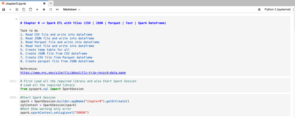 Our spark session is started now with application name “chapter0”. Now we can start with all ETL.