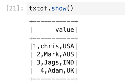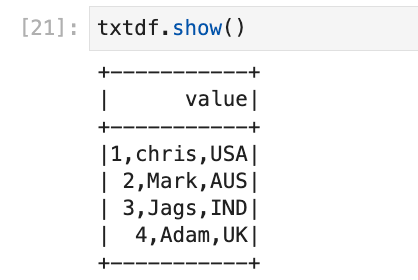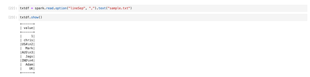 txtdf = spark.read.text(“sample.txt”)