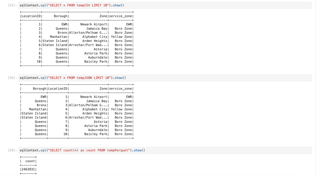We have all the data into dataframe. Now we will create table table/view. So that we can write spark SQL queries.