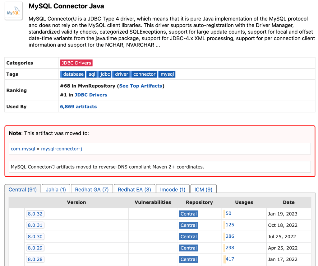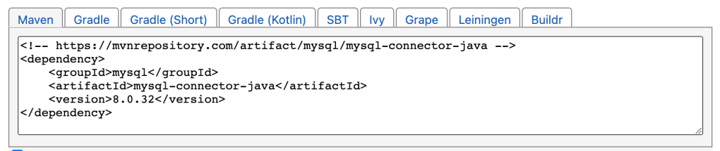 And search for MySQL packages, which gives link: https://mvnrepository.com/artifact/mysql/mysql-connector-java