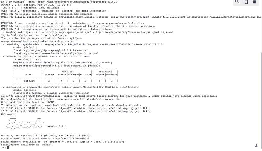 pyspark --conf "spark.jars.packages=org.postgresql:postgresql:42.5.4"
