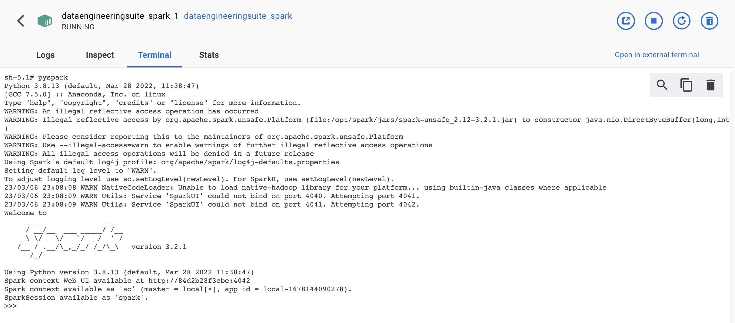 We have our setup of Spark in docker container so we will go to docker terminal.