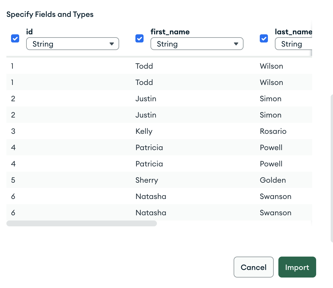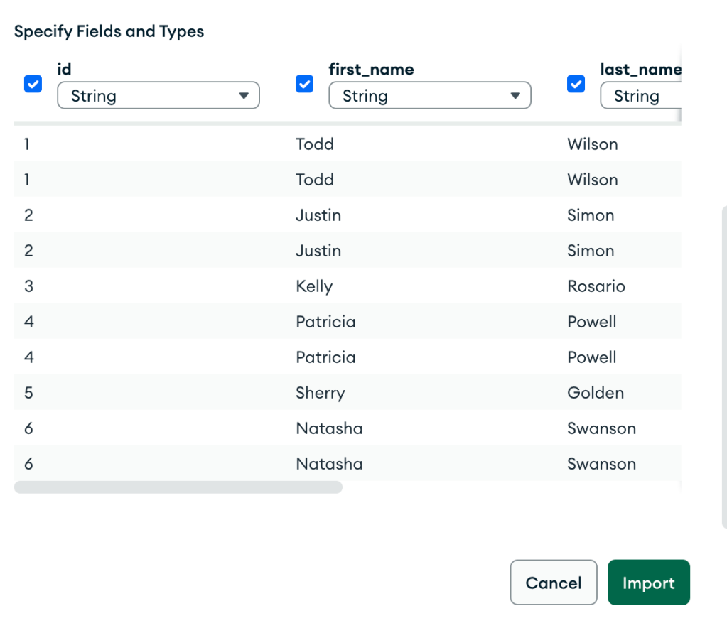 Check all the columns and click on import