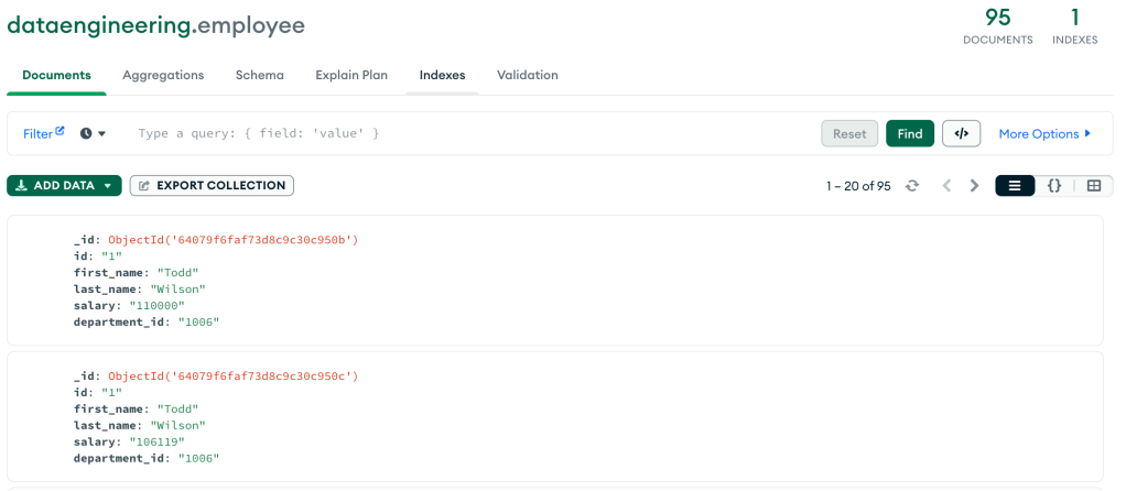 Once you click on import, we will have data available in MongoDB.