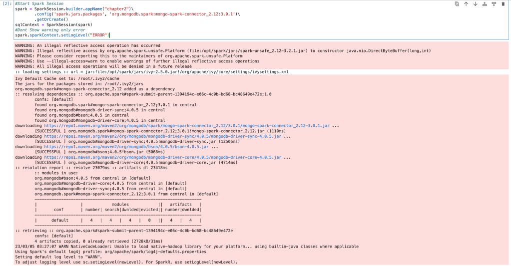 As we discussed earlier, with starting Spark session, we will also specify required MongoDB package. So, it will download and install MongoDB packages with starting Spark session.