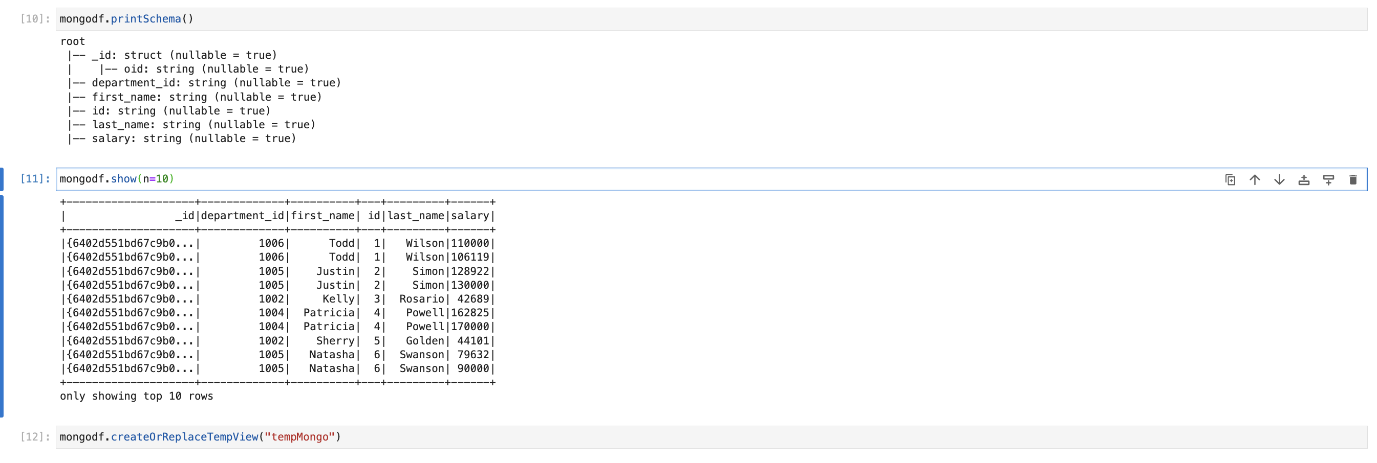 mongodf.createOrReplaceTempView("tempMongo")