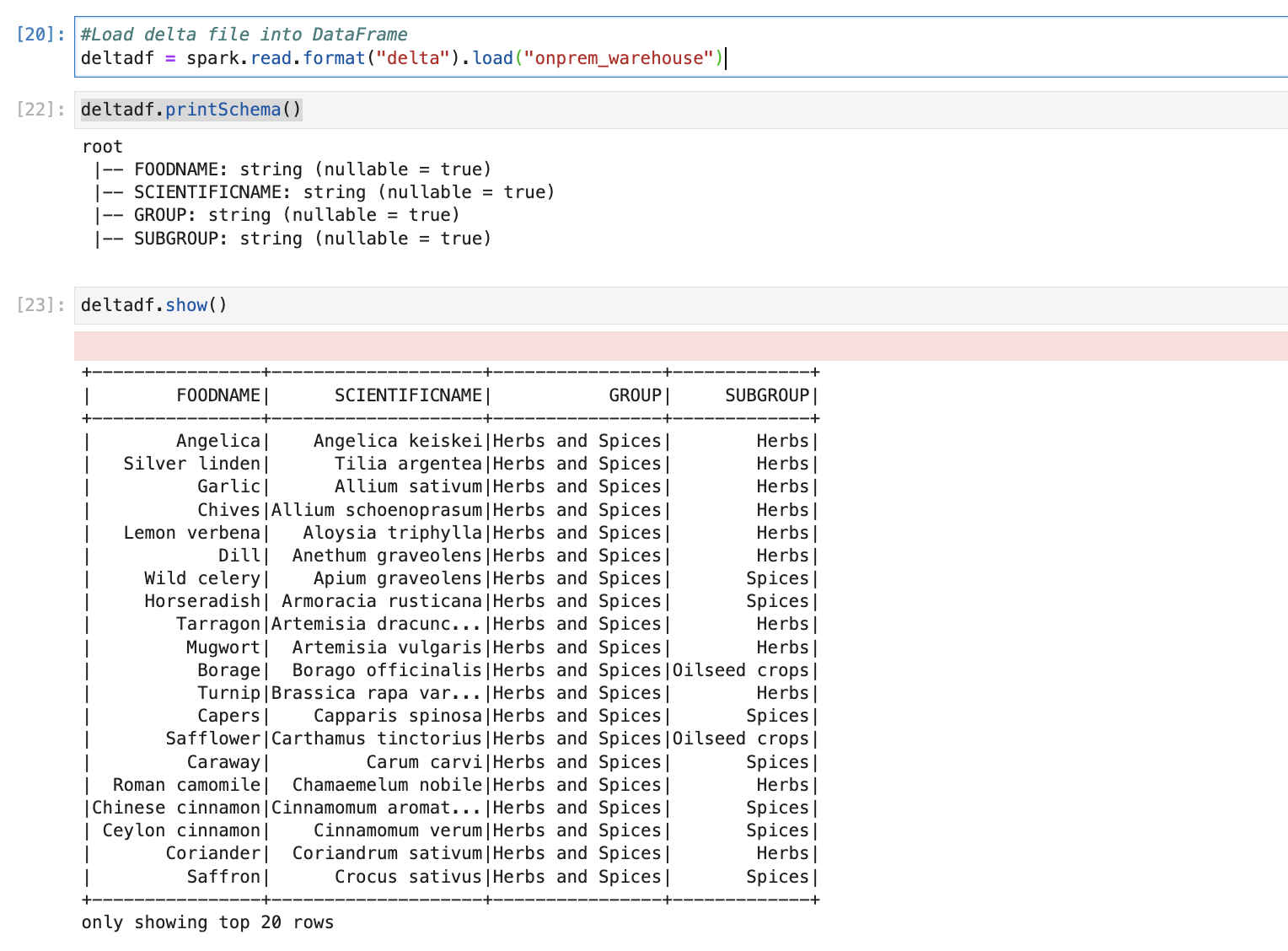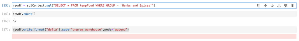 We see that “Herbs” with the highest count and “Fruits” with second highest number. We will create one data frame for “Herbs and Spices” and load that into delta format.