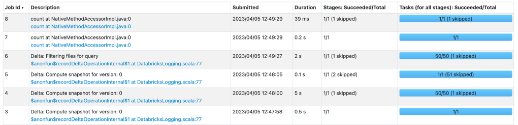 Creating delta table with partition -> Job id 9,10,11, and 12