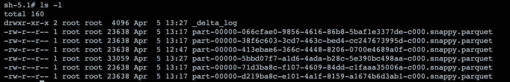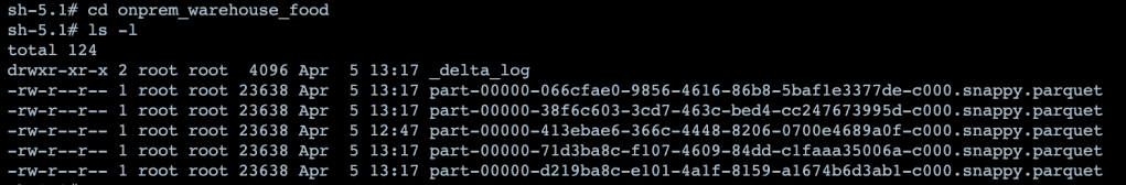 We have created a delta table with the food group as a partition, so at the file server level, it will create a folder as below.