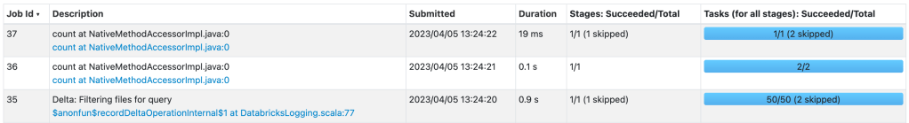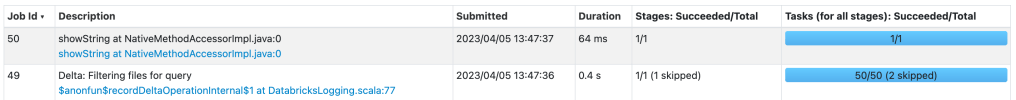 As per the Spark application dashboard, it took around 5 seconds to create a table and for our read query, it took around 2 seconds.