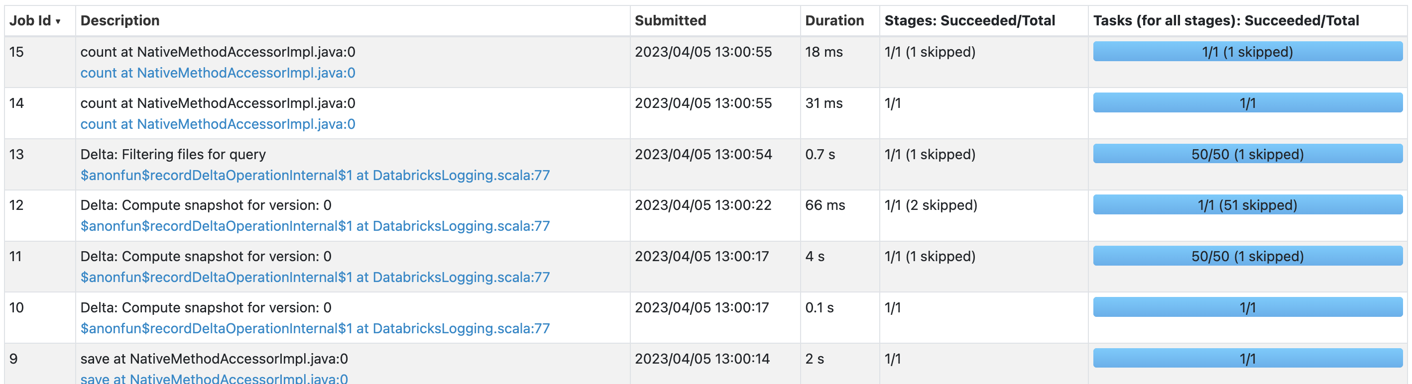 Creating delta table with partition -> Job id 9,10,11, and 12