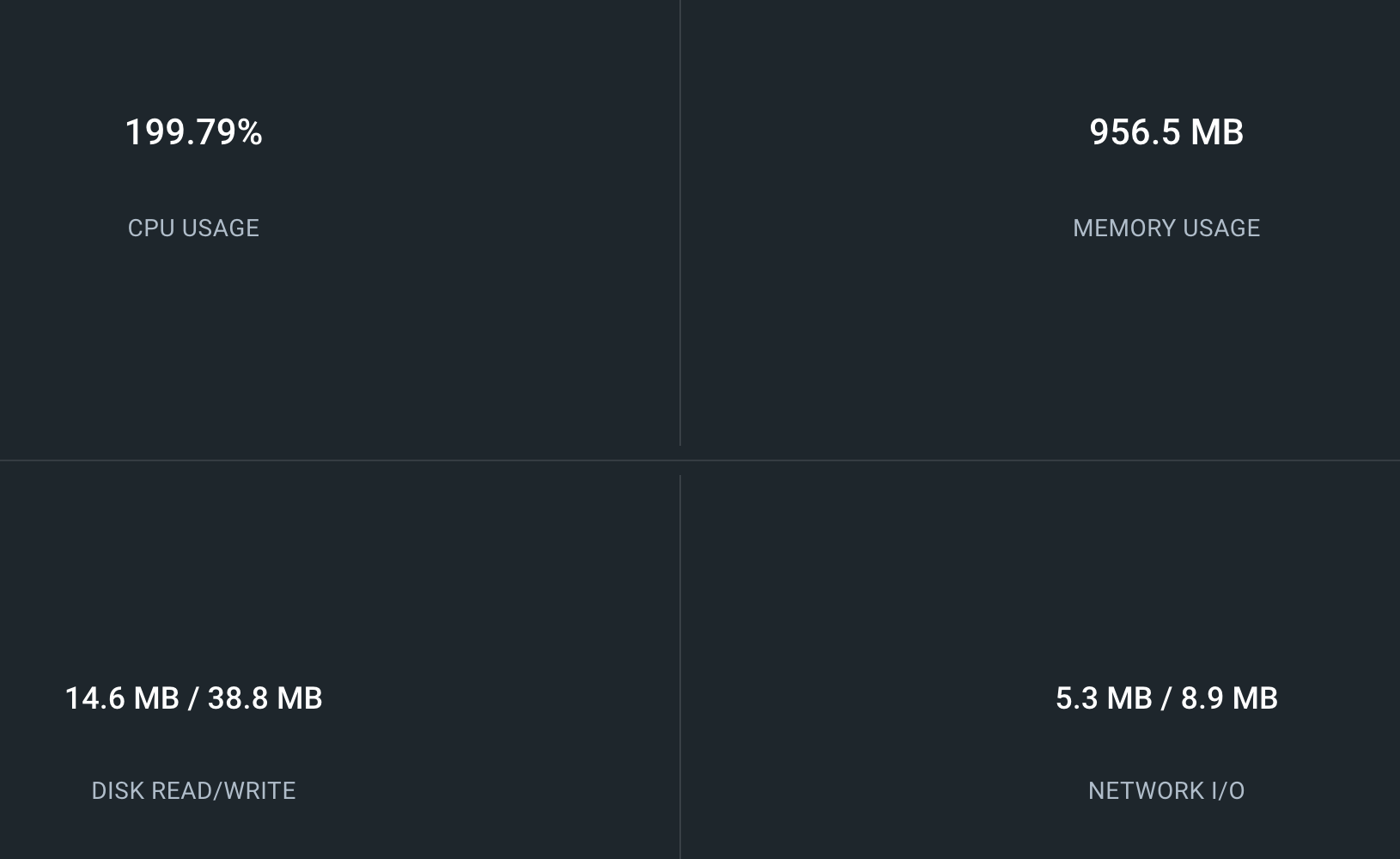 Again, this operation is very expensive. For me with a very small amount of data, it used below CPU and memory. (for few seconds)