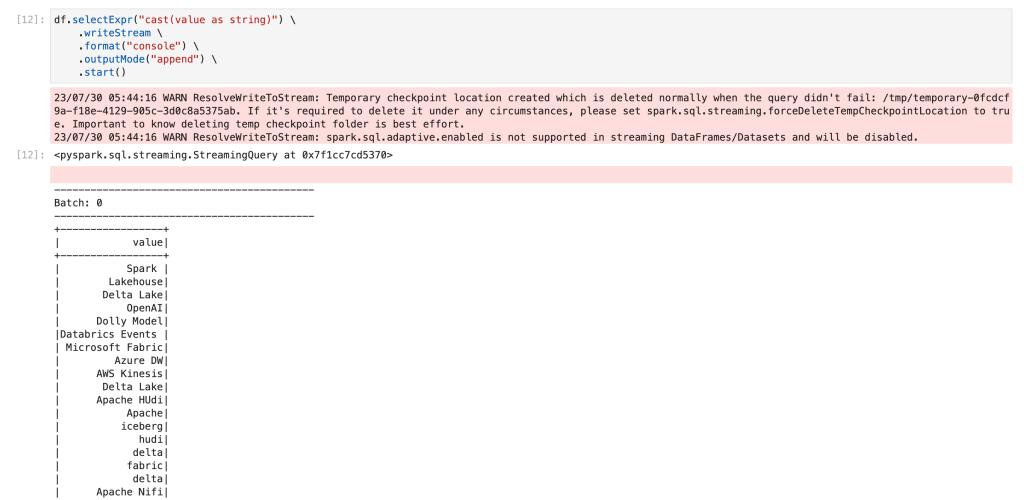 6. Write streaming messages into the files (CSV or JSON or Delta format)