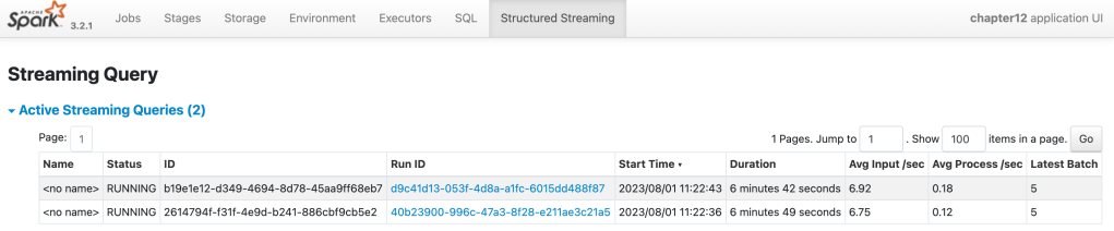 From the Spark Streaming tab, we can see all the active structure streaming sessions.