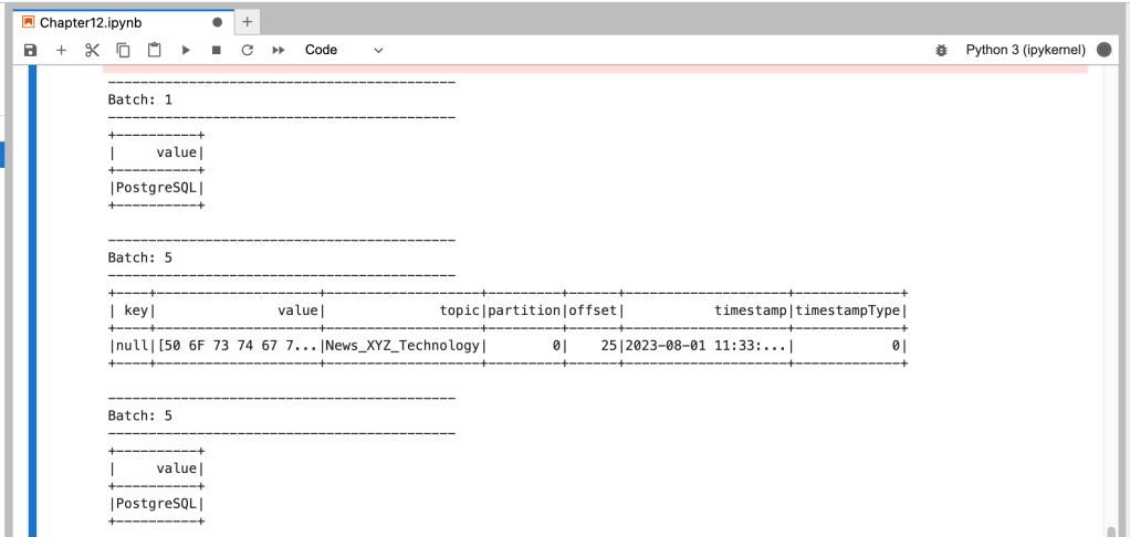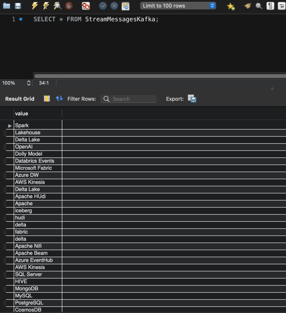 Once, we execute this code, once the message is published it will call the function “foreach_batch_function” and that function is writing data into the SQL server. So now if we go and check the SQL table with “StreamMessagesKafka” we will see all the messages published till now.