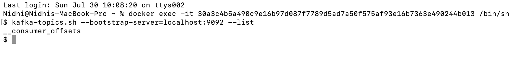 We will go inside the Kafka container. (you can use the docker terminal or can open it in the external terminal)
